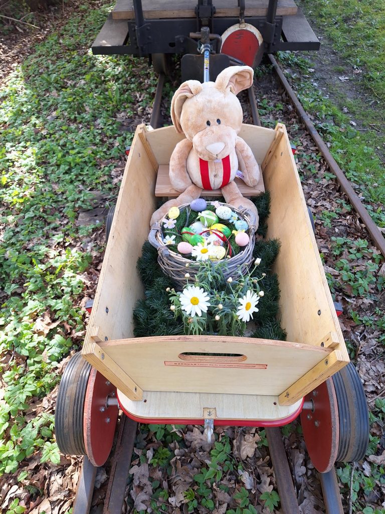 Mit der Henschel-Dampflok von 1927 fahren Sie im Heeresfeldbahnwagen von 1919 vom historischen Deinster Bahnhof am 05.04. und 06.04.2026 nach Lütjenkamp-Museum zum Osterhasen durch die Stader Feldmark und zurück. Die Fahrt inkl. Besuch im Museumsschuppen dauert ca. 50 Minuten, Kinder erhalten eine Osterüberraschung. Für das leibliche Wohl sorgen der Grill am Bahnhof und der Kiosk im Museumsschuppen.